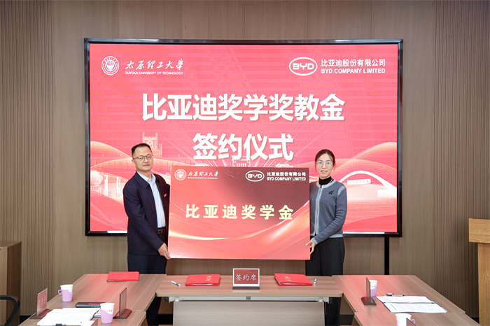 12月10日,太原理工大学比亚迪奖学奖教金捐赠签约仪式在迎西校区举行。比亚迪股份公司(以下简称:“比亚迪”)人力资源处国内地区四部总监陈静、人力资源处国内地区四部招聘经理罗雪、人力资源处国内地区四部太原人事经理卫雅、集团人力资源处国内地区四部校招主管倪婷,招生与就业工作部部长李栩、国内合作办公室副主任李飞及招生与就业工作部相关部门负责人出席仪式。会议由招生与就业工作部副部长高长春主持。李栩代表学校对陈静一行的到来表示热烈欢迎,...