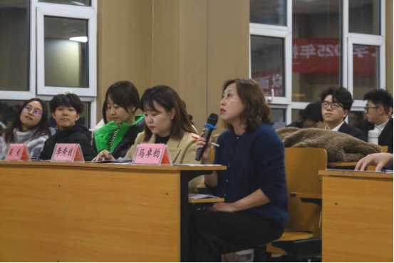 决赛现场还设有各学院学生代表组成的大众评审团,通过举牌方式表达对选手的支持,增强了比赛的互动性与参与感,现场气氛紧张而热烈。