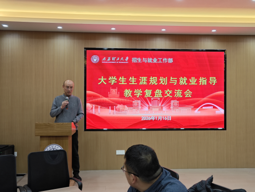 1月16日下午,《大学生生涯规划与就业指导》课程教学复盘会在迎西校区举行。会议围绕本学期首次面向全校新生的课程实施情况展开交流与研讨。招生就业工作部副部长高长春、授课教师代表及学生代表共40余人参会。