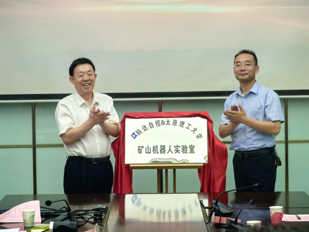 2025年8月9日下午,山西科达自控股份有限公司与太原理工大学共建“矿山机器人实验室”揭牌仪式在科达自控一层会议室(高新国际B座)隆重举行。太原理工大学矿业工程学院院长王开、党委书记张忠璞、煤矿机电系主任王然风、支部书记杨学军、副主任付翔、教师闫明、王泽华,以及科达自控董事长付国军、总经理高波、董事会秘书兼行政副总经理任建英、产品事业部总经理张志峰、总工程师翟德华等企业中高层领导共同出席。会议由高波主持,双方就深化校企合作、推动产学研融合进行了深入交流。
